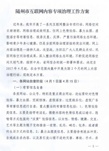 昨日下午,隨州清華網絡參加了由市委組織部組織的隨州市互聯(lián)網內容專項治理工作會,會議主要對互聯(lián)網內容整治工作方案進行了交流,以下為會議文件